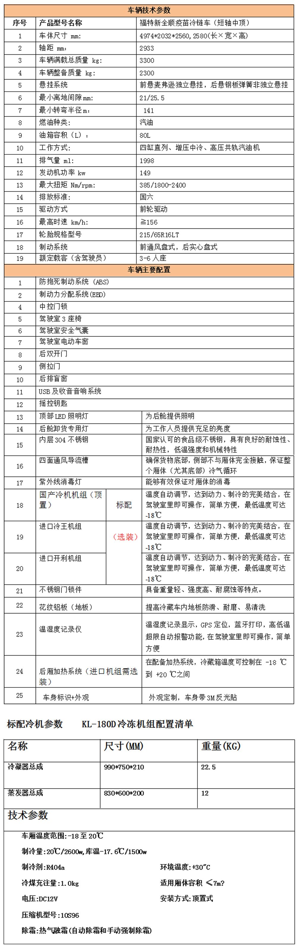 • 福特新全順柴油疫苗冷鏈車(雙排) 參數(shù)展示