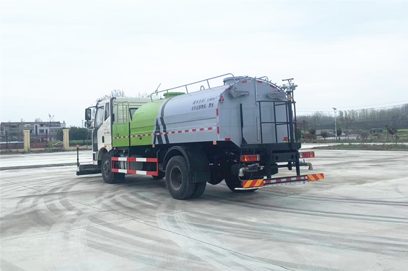 高壓水泵由副發(fā)動機→傳動軸→皮帶傳動→電磁離合器→聯(lián)軸器驅動;低壓水路系統(tǒng),采用雙級葉輪離心泵,效率高、灑水寬度大、水槍射程遠,低壓水泵由底盤變速器取力器通過傳動軸直接傳動。